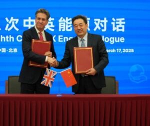 Wang Hongzhi (right) with UK Energy Secretary Ed Miliband. | Photo: UK Government