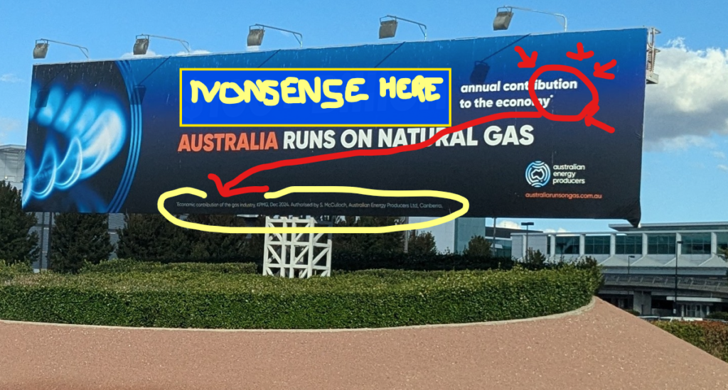 During early 2026, huge billboards outside Canberra airport carried gas industry advertisements. We covered them at the time on The Point liveblog here.