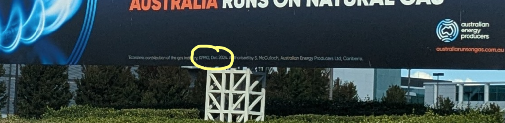 The fine print on the billboard shows that these numbers come not from official statistics, but from a report commissioned by gas industry lobby group Australian Energy Producers. The report was written by consultants KPMG. KPMG’s disclaimer on page 2 is worth a read:
