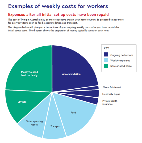 Moreover, the Australian Government’s official advice to PALM workers is that most of their money will stay in Australia. A guide to the payroll deductions permitted under the PALM scheme tells people that about one third of what they earn can be saved or sent home. This is partly because employers who hire people under the scheme are allowed to deduct the cost of things like flights, visas, and transport, and partly because the high price of private health insurance, rent, and other basics.