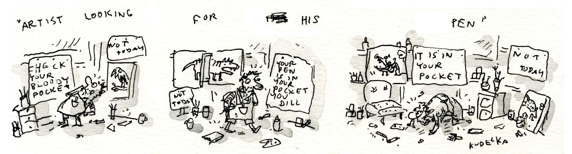 Meanwhile, on the wall hangs a gentle phrase laced with the honesty, humour and satirical sharpness that characterised Kudelka’s creative and cartooning life: “Not today”.![]()