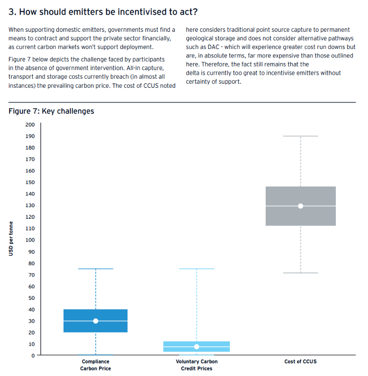 LETA’s pre-budget submission lays down a collection of demands for a massive increase of taxpayer funds towards CCS in Australia. But in doing so, LETA also cite a paper written by EY Parthenon which shows that the cost of capturing carbon is far, far greater than any financial incentives that come from putting a price on carbon, or voluntary carbon offsets: